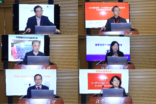 北外科研处处长张天伟教授,英语学院院长杨鲁新教授,中国外语与教育研究中心主任何伟教授,中国外语与教育研究中心徐浩教授、张虹教授等参加会议。许国璋外语教育思想研讨会的举办,对于弘扬和继承以许国璋先生为代表的中国外语界老前辈严谨治学的教育家精神、鼓舞我们不懈为外语学科建设而感悟思想伟力、砥砺奋进前行,具有重要意