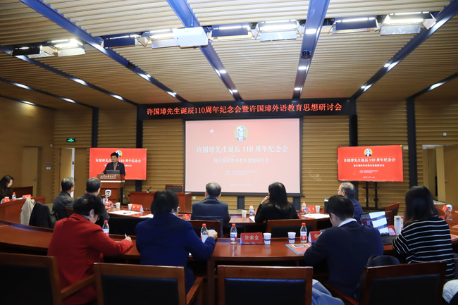 11月8日,许国璋外语教育思想研讨会在北京外国语大学举行。会议由许国璋语言高等研究院主办,外语教学与研究出版社协办。北外党委常委、副校长赵刚教授出席研讨会。许国璋语言高等研究院副院长王文斌教授主持研讨会。
